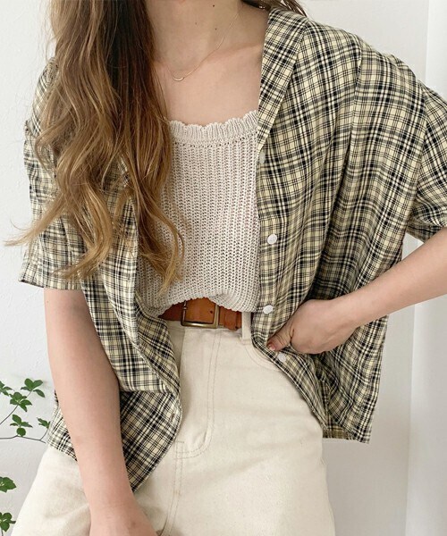 チェック柄がポイントのカイキンシャツ。 トップスとしても、羽織りにもなるアイテムです◎ くすみカラーがかわいくパンツにもスカートにも合わせやすいアイテム。