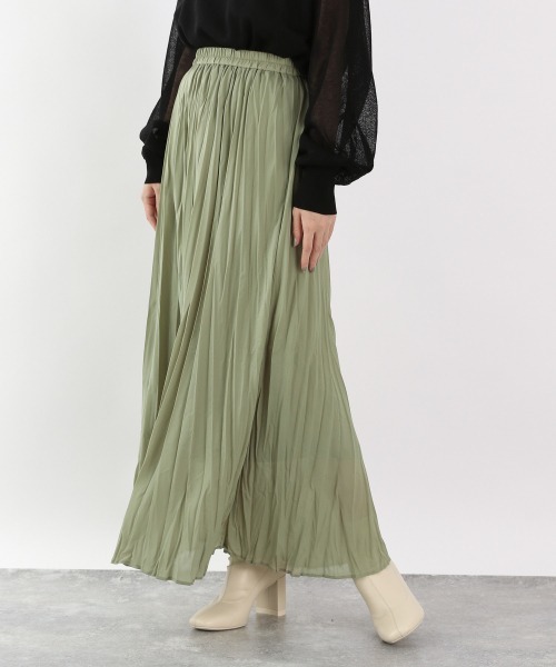 表面に細かい凹凸感があり、程よい光沢感があります。 夏らしく、軽い素材を使用しているのでよりふんわりとした 女性らしさをより引き上げてくれるアイテムです。 トップスにはシンプルなカットソーや、お気に入りのプリントT合わせがおススメ。 足元にはフラットシューズを合わせてバランスをとってみてください