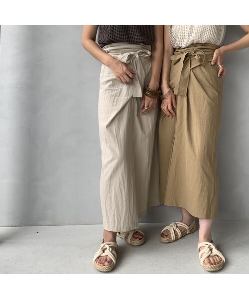 《リネンラップリボンスカート》 巻くだけで大人の抜け感コーデに仕上がるラップスカート。 リボンの結ぶ位置を変えると印象が変わるのでフロントリボンやサイドリボン、バックリボンなど簡単にアレンジをお楽しみ頂けます。気分やコーデに合わせてお好みの結び方をお楽しみ下さい。 シンプルなトップスやブラウスとの相性も◎ 着用モデル 156cm/160cm ◾︎カラー アイボリー/ベージュ ◾︎サイズ FREE 総丈 94cm ウエスト 114cm ※ 独自の平置き採寸のためサイズに誤差が生じる場合がございます。大体の参考までにご覧頂きますようお願い致します。 ◾︎素材 リネン55% 綿45%