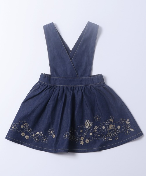 裾の刺繍がポイントのジャンパースカート。定番のジャンパースカートと一味違うデザインは、着るだけでオシャレ度がアップする一枚♪無地のデニム素材なのでシンプルなインナ―でまとめても、柄のインナーと合わせても◎ サイズ展開:100㎝~150㎝ ※こちらのページは100㎝~130㎝の取扱いです。 140㎝~150㎝は商品コード:53727053です。 【KP/ケーピー】 ヨーロピアンカジュアルをベースに、流行のエッセンスを採り入れながら品があり、それでいて元気な女の子の可愛らしさを表現していきます。服だけでなく帽子や靴、バッグ . . . . .といった小物まで女の子のさまざまなシーンに対応できるアイテムを提案。
