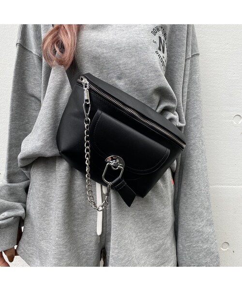※ご利用頂く全てのお客様は必ずABOUTをご覧下さい。 ご購入される全てのお客様はABOUTに同意していただいたものとさせて頂きます。 しっかり素材の硬めのフェイクレザーです。 表のポッケはフェイクになっています😊 «素材» フェイクレザー «カラー» ブラック×シルバー «サイズ» 横→23cm 縦→15cm モデル→158cm