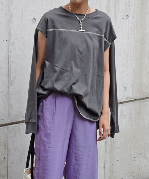 ◆アイテム詳細◆ 袖に入ったスリットがポイントのロングTシャツ。 袖を通さずに着たり、Tシャツのように着て袖を前後で結んだり、様々な着こなしが楽しめる1枚。 オーバーステッチもポイントで、ヴィンテージな雰囲気なデザインに。 【セレクト】 LHELBIE 【SIZE】Fサイズ 平置き(㎝) 着丈75 身幅53 裄丈85 裾幅65 【素材】本体 綿100%