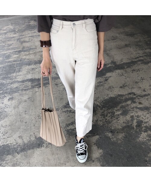 リラックスムードある大人のルーズ感がオシャレなデニム。 ハイウエストなのでウエストまわりをスッキリとみせ、全体的にゆったりとしにデザインながら足首が見える丈感で華奢見せ効果も◎ シンプルなデザインながらも味のある古着風で、こだわりのある雰囲気! ウエストインでTシャツ合わせや、ビッグTと合わせてゆるく着るのもおススメです★ ※モデル身長:161㎝ ◆クリックポストにて代引きをお選び頂いた方は、390円プラスさせていただき、宅配便代引きにて発送させていただきますのでご了承下さい。 ◆カラー アイボリー ◆サイズ Sサイズ ウエスト:66cm ヒップ:90cm わたり:31cm股上:26cm 股下:71.5cm Mサイズ ウエスト:69cm ヒップ:93cm わたり:31.5cm 股上:27cm 股下:72.5cm ※多少の誤差は予めご了承ください。 ◆素材 綿93% レーヨン7% ※こちらの商品は海外縫製の為、多少歪み・縫製の甘さ(糸の出)などがある場合がございます。 予めご了承下さい。