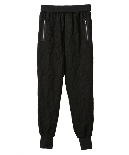 フロントはレースジャカード、後ろ身頃はジョーゼット素材を使用したデザインパンツ。 裾のリブやファスナー使いがリラックスとモードを表現。トップスに同色を持ってきたワントーンのコーディネートが今年はおすすめ。 店舗にお問い合わせの際は、ASTRAET各店舗まで 下記の品名/品番をお申し付け下さい。 品名:ASNC A/W JAQ スソ RIB 品番:5414-236-0029