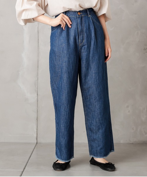 ピュアルセシン 2020 autumn collection【Emotional Luxe】 ミニマルやシンプルをベースにしつつ丸みのあるシルエットやハンドワーク・フェミニンなディテールで心地よい温もりを感じてもらえるスタイルの提案 ◇リネン混で清涼感があり、柔らかい肌ざわりのデニムパンツ◇ コットンとリネンが混ざった夏仕様のデニムパンツ。 ウエストは後ろゴムになっており、ストレスフリーな穿き心地です。 トレンドのフォトTシャツやシャツブラウスなど着回し抜群で、 今年の夏ワードロープにあると便利な1枚です。 ・コットンとリネンで柔らかい肌触りのデニムパンツ ・ウエスト後ろゴム ・Tシャツやブラウスなど着回し◎ ============================== 透け感:なし 裏地:なし 伸縮性:なし 光沢感:なし 生地の厚さ:普通 洗濯:手洗い可 【スタッフコメント】 年齢:30代後半/身長:156cm/普段着用サイズ:Mサイズ サイズ感:ウエストは後ろがゴムになっていて、ちょうど良いサイズ感でした。。太もも周りもゆったりとしているので、気になる体型もカバーもしてくれます。 素材感:コットンとリネンなのでリネン独特のシャリ感もなく、サラッとした涼しげな素材感です。 ============================== ※撮影場所やお使いのモニター環境により若干お色味が異なる場合がございます。特にロケの撮影では明るく見える傾向にございます。 ※予約商品はサンプルで撮影をしております。若干の仕様が変更になる場合がございますので予めご了承の上ご注文くださいますようお願いいたします。