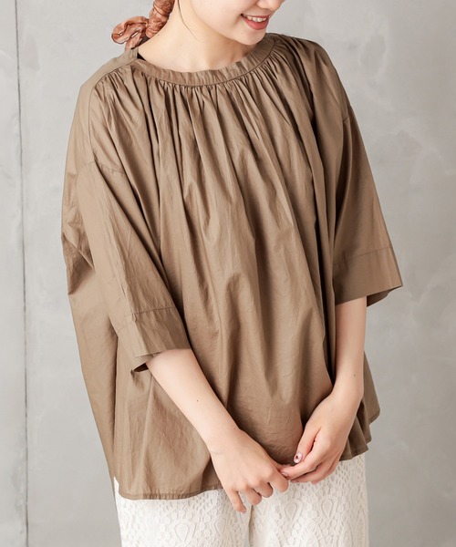 ピュアルセシン 2020 autumn collection【Emotional Luxe】 ミニマルやシンプルをベースにしつつ丸みのあるシルエットやハンドワーク・フェミニンなディテールで心地よい温もりを感じてもらえるスタイルの提案 ◇バックスタイルが印象的な大人の女性に馴染む1枚◇ バックスタイルにねじりのデザインを取り入れたブラウスが登場。 シャリシャリとした張りのあるペーパー加工を施した素材が、上品さをプラスしてくれます。 ボトムスにはニットパンツを合わせてカジュアルダウンさせたり、トレンドのレースやサテンパンツなどに合わせてキレイめスタイルにもお使いいただけます。 ・バックツイストが印象的なデザイン ・インナー、ボトムスとのコーディネートでON/OFF印象を変えられる ・コットン100% ============================== 透け感:ややあり 裏地:なし 伸縮性:なし 光沢感:なし 生地の厚さ:薄手 洗濯:手洗い可 【スタッフコメント】 年齢:30代後半/身長:156cm/普段着用サイズ:Mサイズ サイズ感:胸元はギャザーが入っている為、ゆったりと着用していただ けます。 素材感:薄手で少し張りがある素材感。 ============================== ※撮影場所やお使いのモニター環境により若干お色味が異なる場合がございます。特にロケの撮影では明るく見える傾向にございます。 ※予約商品はサンプルで撮影をしております。若干の仕様が変更になる場合がございますので予めご了承の上ご注文くださいますようお願いいたします。