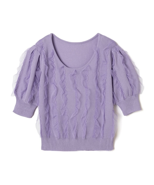 異素材の組み合わせが目を惹くアクセントに。 チュールのデザインがフェミニンな雰囲気をアピール。 広めに開いたネックラインがデコルテを綺麗に演出する。 ★伸縮性があります。