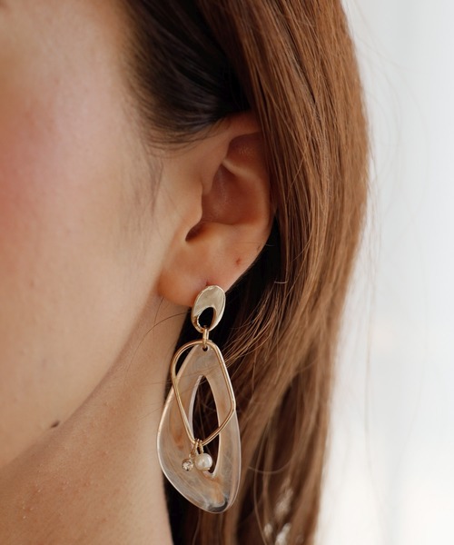 マーブルとメタルのコンビネーションで魅せる、清涼感のあるデザインピアス。アイキャッチなアクセントに映え、顔周りを華やかに演出してくれます。デイリーコーデのクラスアップにと、幅広い装いにマッチして活躍してくれそう。
