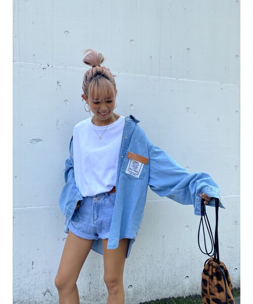 ※ご利用頂く全てのお客様は必ずABOUTをご覧下さい。 ご購入される全てのお客様はABOUTに同意していただいたものとさせて頂きます。 ネームパッチシリーズ第3段🖤 ポケットに洗濯ネームがついた可愛いデザインのデニムシャツです! セットアップの羽織としても使えるベストな サイジングになってます! «素材» コットン&フェイクレザー «カラー» ライトブルー «サイズ» 着丈→72cm バスト→118cm モデル→158cm