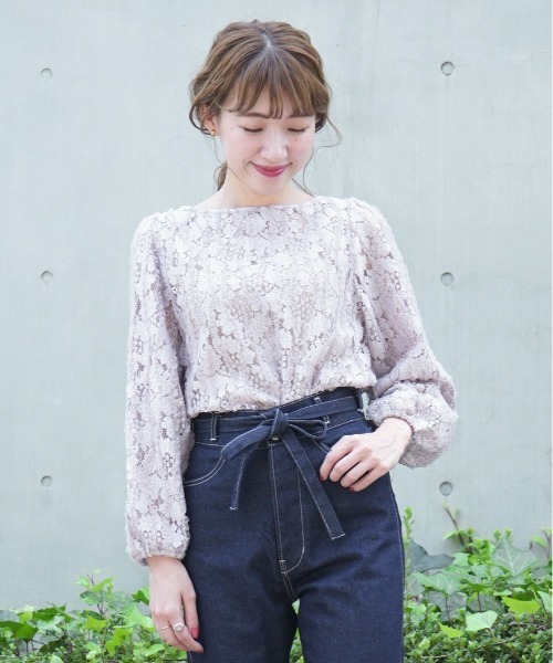 チュールのフリルが織り込まれたような生地感が目を惹くブラウス。華やかな生地が引き立つようシンプルなデザインに仕上げました。ふんわりとしたバルーン袖や開きすぎないネックなど、シンプルながらも女性らしさが引き立つ1枚です。透け感があるのでflowerのインナーと合わせて、デニムでカジュアルダウンした着こなしがおすすめ!同系色のインナーと合わせてきれいめボトムとスタイリングすればちょっとしたお食事会にも◎