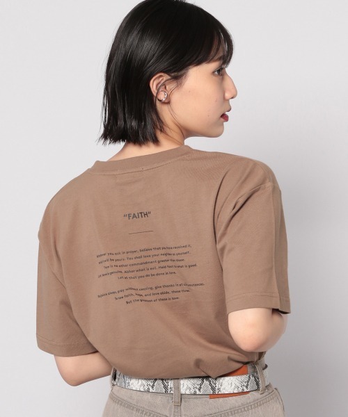 ◆大人な雰囲気のシンプルなロゴが高見えTシャツ◆ 素肌に着ても肌あたりのいい綿100%素材で程良い厚さもあり、 透け感はあまり気になりません。 ゆったりとしたシルエットの型で身体のラインを拾わず、リラックスして着て頂けます。 着回し力抜群のシンプルなロゴ入りでデイリーで活躍間違いなし! ボトムを選ばずどんなボトムとも合わせやすく◎ デニムと合わせてカジュアルなスタイリングはもちろん、 タイトスカートに合わせてこなれ感のある大人な雰囲気のスタイリングにも◎ ※撮影環境により、光の当たり具合で 色味が違って見える場合があります。 あらかじめご了承下さい。
