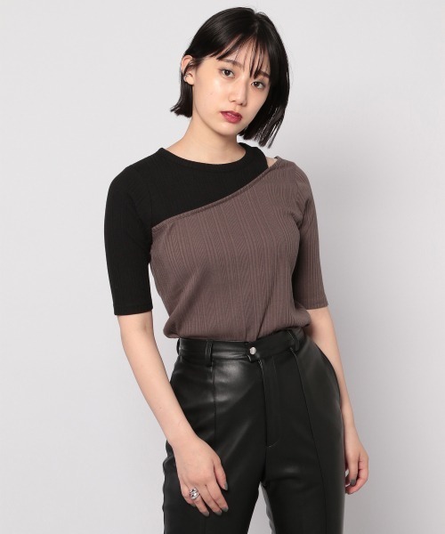 ◆ショルダースリットがポイントのデザインカットソー◆モードなデザインがスタイリングのアクセントになりおすすめです。体にソフトフィットするサイジングとなっています。表面変化のあるランダムテレコ生地を使用。バイカラーの配色もポイントです◎※撮影環境により、光の当たり具合で 色味が違って見える場合があります。 あらかじめご了承下さい。