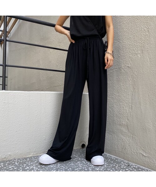 ※ご利用頂く全てのお客様は必ずABOUTをご覧下さい。 ご購入される全てのお客様はABOUTに同意していただいたものとさせて頂きます。 美脚になるサラッとしたパンツ! ウエストはゴムで着脱もしやすく、 暑い日もストレスなく着用できます。 ポケットはありません。 «素材» ポリエステル ポリウレタン «カラー» ブラック «サイズ» ウエスト→64cm ヒップ→98cm 股上→33cm 股下→72cm 太もも幅→31cm 裾幅→27cm モデルサイズ→158cm