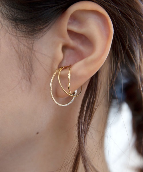 女性らしく華奢なラインのイヤーカフセットです。捻りを加えたクロスタイプと、レザーのようなシボの型押しを施した大きめな輪っかタイプ。一見シンプルな中にも繊細な加工が施されているのは日本製ならでは。セット使いはもちろん、単品で使ったりお手持ちのピアスやイヤリングと合わせたり、コーディネートの幅が広がるアイテムです。カジュアルな普段使いはもちろん、オフィスから結婚式や卒業式・入学式などのオケージョンシーンやパーティーシーンで、ファッション・コーデを選ばずお使いいただけます。◆《お気に入り登録》のおすすめ◆気になる商品は「お気に入り」登録がおすすめ。・「商品のお気に入り登録」で再入荷通知や、ラスト1点の通知、セール通知も受け取ることができます!・お気に入り登録商品は、マイページにて現在の商品詳細(価格情報や在庫状況)が確認が可能です。お買い物リストの管理に是非ご利用下さい!