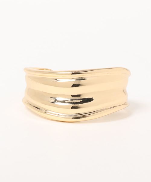シンプルなデザインの太めバングル。 夏の時期、スタイリングのアクセントにオススメです。 これひとつでおしゃれに決まります! シルバーとゴールドの2色展開で、お手持ちのリングと合わせてコーディネートしやすいです。