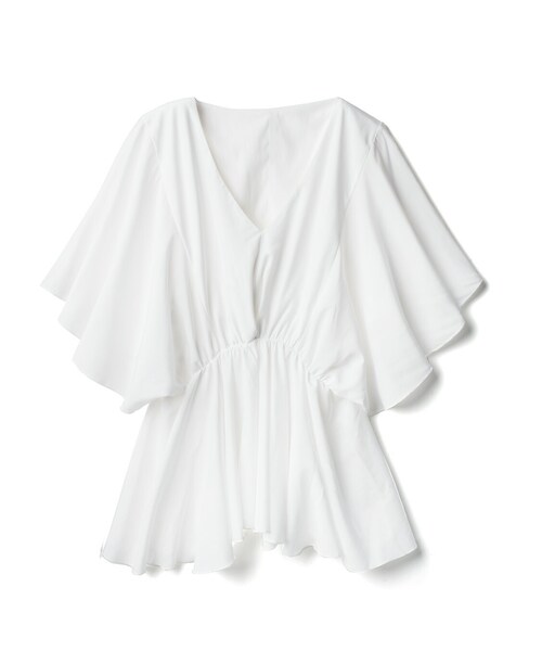 ゆったりとしたドルマン風シルエットがヌケ感を醸す。 Vネックがすっきりと大人顔に導くポイント。 フレアに広がるぺプラムシルエットが表情を豊かにする。 ★ウエストゴム入りです。