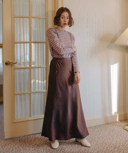 【flowriri サテンバイアススカート】バイアスづかいで動きやすく程よく身体のラインに添う女性らしいシルエット《styling》カットソーやブラウスなど様々なトップスと好相性。スウェットやニットと合わせると、ほどよい抜け感を演出することができます。《detail》腰回りはすっきりしており、裾部分がフレアになっているマーメイドシルエットのスカート。気になる体型をカバーしつつ、女性らしく見せることができます。《fabric》 なめらかな肌触りとやわらかい光沢感があるサテンを使用したスカート。見た目にも高級感のある一枚です。洗濯もご自宅で可能ですのでお手入れがしやすいです。※詳しいお手入れ方法は商品タグをご参照ください。※画像の商品は撮影環境(光の照射や角度)により、実物と色味が異なる場合がございます。また表示のサイズ感と実物は若干異なる場合もございますので、予めご了承ください。flowriri / フロウリリ女性が女性らしくいられるデザイン。甘さの中にほどよく大人の抜け感を出したアイテムを展開。【商品のお気に入り登録】完売カラーの再入荷通知やラスト1点の通知プライスダウンの通知も受け取ることができます。ぜひご登録ください◎【ブランドのお気に入り登録】新商品や再入荷など、ブランドの情報をいち早くお知らせします!ぜひご登録ください◎