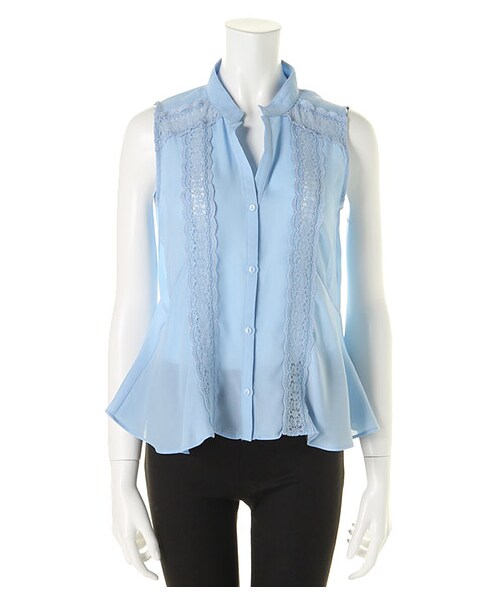 裾広がりのマーメイドラインが、女性らしい美しいシルエットを描くノースリーブシャツ。透け感のある薄地のマテリアルと、レースラインの切り替えで、エレガントな肌見せを演出。鎖骨を綺麗に映し出すスキッパーネックもポイント。色味はミニマムなので、コーデにすんなりと溶け込みます。コケティッシュでいてフェミニティ薫る1枚は、ワンランク上のレディコーデを叶えてくれます。