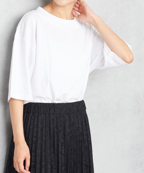 ピュアルセシン 2020 autumn collection【Emotional Luxe】 ミニマルやシンプルをベースにしつつ丸みのあるシルエットやハンドワーク・フェミニンなディテールで心地よい温もりを感じてもらえるスタイルの提案 ◇汗を気にせずお洒落を楽しめる撥水加工のTシャツ登場です◇ 肌触りの良い綿100%の生地に汗をかいてもシミになりにくい撥水&吸水加工を施し、汗ばむ季節も快適に過ごせる優秀アイテム。 モックネックのコンパクトな衿ぐりは、シンプルながらもスポーティなトレンド感。 袖丈も二の腕が見えすぎないので一枚で安心して着られ、様々なコーデで大活躍するオススメの1枚です。 ・汗の気になる季節でもオシャレを楽しめる1枚 ・サイドスリットがスッキリとした印象に ・サロペットやサス付きパンツのインナーにも◎ ・ベーシックカラーでロングシーズン活躍 ※撥水加工は、永久的なものではなく、着用や洗濯をくり返すことにより、徐々に効果が低下します。撥水加工が低下した際は、クリーニング店に再加工を依頼してください。 ※日光や照明等に長時間当たると色褪せしますのでご注意下さい。 ※末永く愛用頂く為に、アテンションタグ・洗濯ネームを必ずご確認の上、着用又はお取り扱い下さい。 ※撮影場所やお使いのモニター環境により若干お色味が異なる場合がございます。特にロケの撮影では明るく見える傾向にございます。 ※予約商品はサンプルで撮影をしております。若干の仕様が変更になる場合がございますので予めご了承の上ご注文くださいますようお願いいたします。
