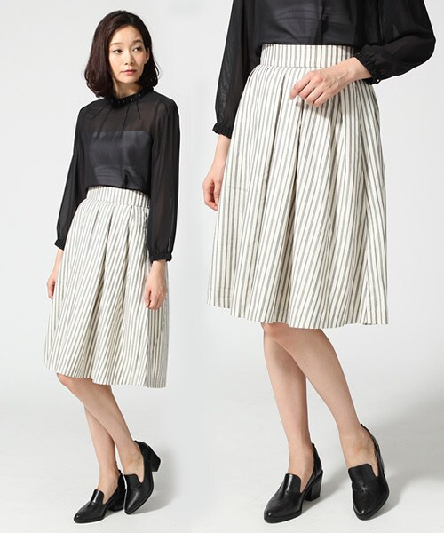 トレンドのミディ丈ガラスカート☆少し長めのミディ丈がより季節感を演出してくれます♪今季トレンドのチェック、ストライプ柄がトラッドな雰囲気で◎Tシャツ合わせのコーディネートがオススメです。インでもアウトでも☆足元をパンプスやヒールのある少しかっちりしたものと合わせるのが今の気分♪