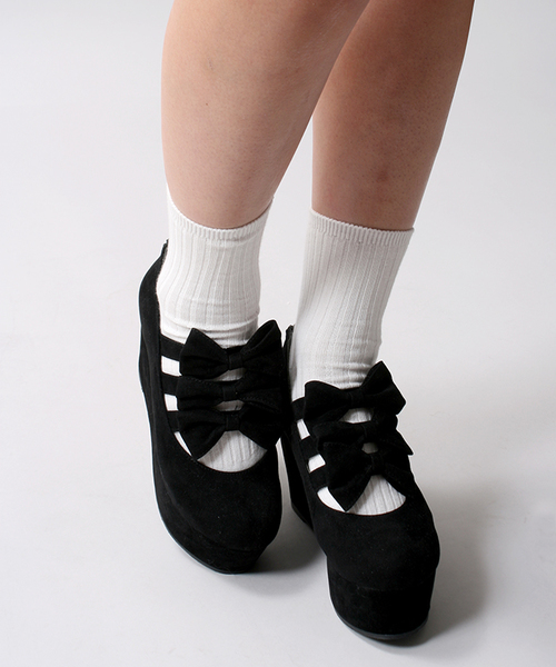 定番のパンプスをラウンドトゥ&ウエッジソールの厚底仕様で履きやすく、可愛らしく仕上げました。リボンモチーフと、季節感溢れるベロアの表情が魅力。足元をしっかりとホールドしてくれ、歩きやすいのも特徴です。インソールにはクッションが入っているので履き心地も快適。パンプスの合わせやすさはそのままに、デザインで違いを持たせたひと品。お値段も手頃でご自身用は勿論、プレゼントにもオススメです。 M=23.5cm相当 L=24.5cm相当 ※画像の商品はサンプルです。 実際の商品と仕様、加工、サイズが若干異なる場合がございます。 ■厚底靴に関しての注意事項■ ※ファッション性を重視した商品の為、履きなれない状態での長時間の着用はお控え下さい。 ※歩くために必要な強度を保持している商品ではありますが、ファッション性を重視した商品のため、走る・跳ねる等の行為をとられた場合は瞬間的に想定以上の負荷がかかり商品が破損する恐れがありますのでご注意ください。 ※足を捻る・挫くなどして転倒しかけた際、場合によっては怪我を未然に回避する為にバンドの引き抜けや表底の剥離が発生する事がございます。 ※段差や傾斜を歩行される際には、ご注意下さい。 ※足首を痛める恐れがある為、厚底靴やヒールの高い靴を着用しての自転車のご利用はお控え下さい。 ※厚底靴を着用した状態でのお車の運転は各都道府県の条例により禁止されています。お車を運転される場合は、厚底靴の着用はおやめ下さい。 +++厚底アイテム一覧はこちら+++ WEGOの特集ページはコチラ