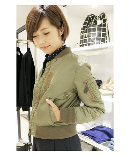 【2013AWの大人気MA-1ブルゾンが今年も登場!】今年も注目の集まるミリタリーファッション。ルルからはコンパクトなサイズ感にこだわって作ったMA-1ブルゾンが今年も入荷します。小さく着ることによりファッショナブルで女性らしいイメージに。ワンピースやレースアイテムなどフェミニンなアイテムとの相性も抜群です。中綿で軽くて着やすく、真冬にオーバーサイズコートと重ねて着るのもお勧めです。秋から永く愛用頂ける今年マストなアイテムです。モデルサイズ:身長:157cmバスト:77cmウエスト:59cmヒップ:85cm着用サイズ:34※店頭での撮影画像は、光の当たり具合で色味が違って見える場合があります。商品の色味は、スタジオ撮影の画像をご参照ください。shopmodel:H166着用サイズ:34※画像は2013AW商品の画像です。※前回2013年商品はFREEサイズでしたが、こちらの商品は34、36の2サイズ展開となります。前回のFREEサイズは34サイズのサイズ感となります。モデルサイズ:身長:157cmバスト:77cmウェスト:59cmヒップ:85cm着用サイズ:36