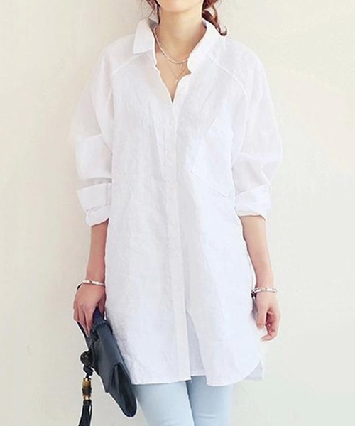 ゆるシルエットがクセになる、ドロップショルダー&ドルマンスリーブのロングシャツ。毎日着ても飽きのこないナチュラルでシンプルなデザインの大きめに仕上げたふんわり優しい着心地です。体型カバーも期待できちゃう、ゆったりワイドなロング丈は、清涼感漂うチュニックとしての活躍も◎。ロールアップ&裾を絞ってボリュームあるフレッシュなクロップド丈を楽しんだりオシャレの幅が広がるオールシーズン活用できる一枚です。スカートでもデニムでもボトムスを選ばない優れものオシャレアイテム。肩落ちの抜け感がナチュラルな雰囲気のシンプルで大人可愛いデザインです♪プチプライスなのも嬉しいポイントです。・ゆるっと着用できる肩落ちデザイン・オフィスカジュアルにもおすすめ・どんなコーデにもマッチするシンプルさ・透け感のあるシアー素材