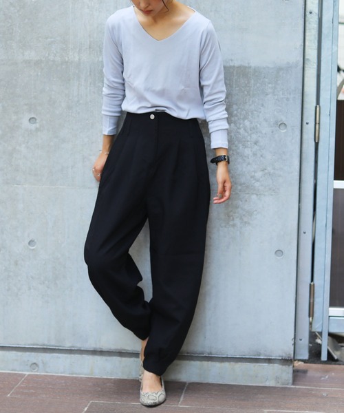 オールシーズン活躍するスタンダードデザインのカットソー(トップス・長袖・綿)。コットンフライスと呼ばれる生地を使用し、ほどよい厚みと柔らかい手触りが特徴のロングTシャツです。 定番に使えて、色々なボトムスと相性がいいので、持っていると重宝するアイテムです。 程良い開きのVネックが首元をすっきりと見せてくれ、女性らしさが際立つ雰囲気になります。 ・透け感少しあり ・伸縮性あり