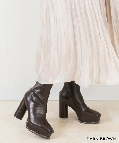 ◆2020AW新商品◆ エッジの効いたスチレッチブーツ。履き口のきれいなラインにこだわり、全体的に柔らかく仕上げました。 アクセントの効いたステッチピースがポイント。 ヒールは10cmと高めですが、ストームがあるのであまり高低差なく楽に履いていただける一足です。 ‐‐‐‐‐‐‐‐‐‐‐‐‐‐‐‐‐‐‐‐‐‐‐‐‐‐‐‐‐‐‐‐ ★スタッフコメント (足の形には個人差がございますのであくまでご参考までにお願い致します。) 【スタッフA】 足長:22.5 ワイズ:3E(やや広め) 私はSサイズをぴったり履きます。 【スタッフB】 足長:23.5 ワイズ:3E(広め) 幅はきついですが、Mサイズを履きます。 【スタッフC】 足長:23.5 ワイズ:E(ふつう) 私はMサイズをぴったり履きます。 【スタッフD】 足長:24 ワイズ:E(ふつう) 私はLサイズを履きます。 ‐‐‐‐‐‐‐‐‐‐‐‐‐‐‐‐‐‐‐‐‐‐‐‐‐‐‐‐‐‐‐‐