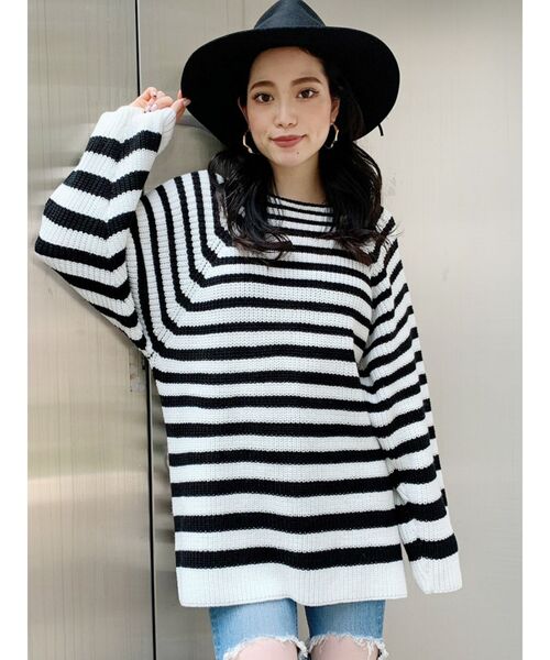 裾に向けボーダーのピッチを変えたデザインがおしゃれなニットTOPSです。ルーズシルエットなのでウエストにベルトマークしてもかわいいです。