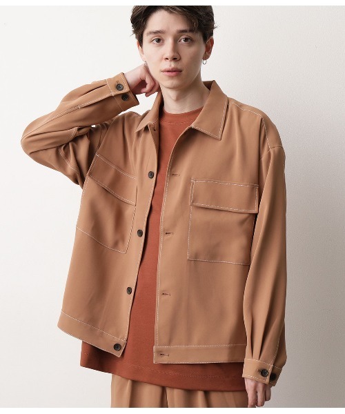 キレイなドレープ性と若干のシャリみが特徴のポリエステルを使用し鮮度抜群なカラー展開 リラックスしたサイズとドレープ素材でトレンド感のある抜けた印象になります ブラック×ホワイトステッチだけではなくシャーベットカラーのサックス×ホワイトステッチは他にはない価値観のある配色です ショート&ワイドシルエットで女性にもお勧めできるアイテムです 【同素材ボトム】 ANS60110 ステッチワイドパンツ