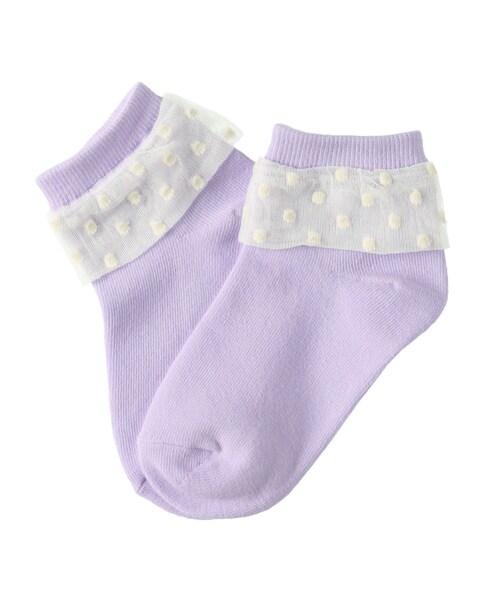 チュール×ドット柄のフリルが可愛いソックスです。短い丈なので、バレエシューズがやローファーとの相性GOOD!ちょっとしたお出かけスタイルにピッタリです。