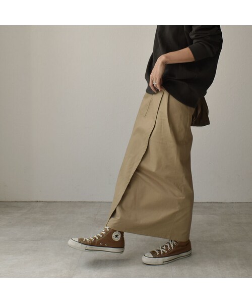 made in Japan フロント部分についたポケットが印象的なチノラップスカートです。後ろにスリットが入っており、ストレッチもきいているので足さばきも良く楽に着用して頂けます。ハリのある生地でシルエットを拾いにくいのも嬉しいポイント。スウェットやTシャツなどカジュアルトップスを合わせても良いですし、ブラウスやシャツを合わせてもまた違った印象でスタイリングして頂けます。年中素材ですので、長い期間で着用頂けます。 カラーは定番で合わせやすいベージュ、ちょっと早めの秋を感じるレンガ色も今季取り入れたい色味です。 (モデル身長166cm/Mサイズ着用) ■素材 コットン97% ポリウレタン3% ■サイズ(M/L) ウエスト 67cm/70cm ヒップ 88cm/90cm 総丈 96cm/96cm ■モデル着用 ≪ブラウン≫ 【トップス】 https://lavishgate.net/items/5f06bba574b4e40d67c28397 ショルダーパット タック Tシャツ ブラック(nh-tops-02171) 【サンダル】 https://lavishgate.net/items/5e93eee50a36a77a780b5343 スクエアトゥ ダブルストラップ ミュールサンダル ブラック (shoes-02095) 【バッグ】 https://lavishgate.net/items/5ebe10debd21781ce3c5b69f エコレザー ミニ巾着バッグ ブラック(bag2-02508) ≪ベージュ≫ 【トップス】 https://lavishgate.net/items/5f4dc1d67df28155f43d2d9b 日本製 切り替え キーネックベスト モカ(tops-04048) 【バッグ】 https://lavishgate.net/items/5dcdf2b5b9de65518bbf0ccb エコレザー ラウンドミニポシェット ショルダーバッグ エクリュ(nh-bag2-02483) 【シューズ】 https://lavishgate.net/items/5dc25eb0e3900717d2e6d46c エコレザー 足袋フラットパンプス エクリュ(shoes-02092) こちらは、クロネコ宅急便で発送商品になりますので、お届けまでに発送から1~2日かかります。