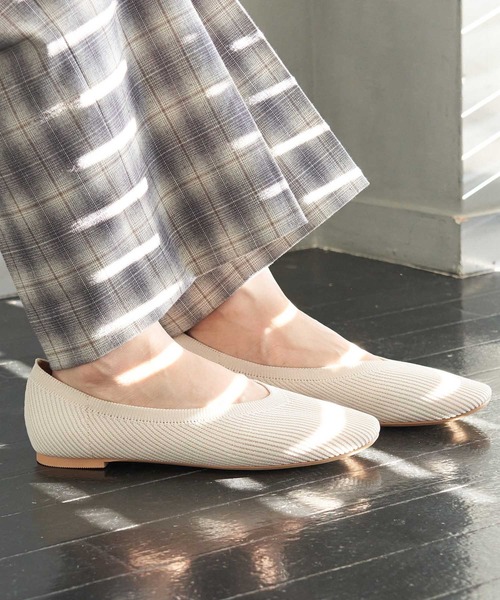 素材感が目を惹く斬新なシューズが登場。アッパーにリブニットを使った、モダンな表情のフラットシューズです。 柔らかなラインのスクエアトゥが、女性らしさを引き立ててくれる一足。 足にしなやかに馴染み、履き心地も快適そのもの。 エレガントからカジュアルまで、幅広く合わせられるのが魅力です。 ※この製品は、水や汗、摩擦などにより色移りする恐れがあります。白や淡い色のソックス、ストッキングの着用の際はご注意下さい。また、雨や雪の日のご使用はお避け下さい。 ※重量:片足145g 重量ですが、サンプル24.5cmでの計測になります。 実際の商品と多少異なる場合がございます。 ※撮影時の光、お使いのモニター環境によって色の見え方が違う場合がございます。
