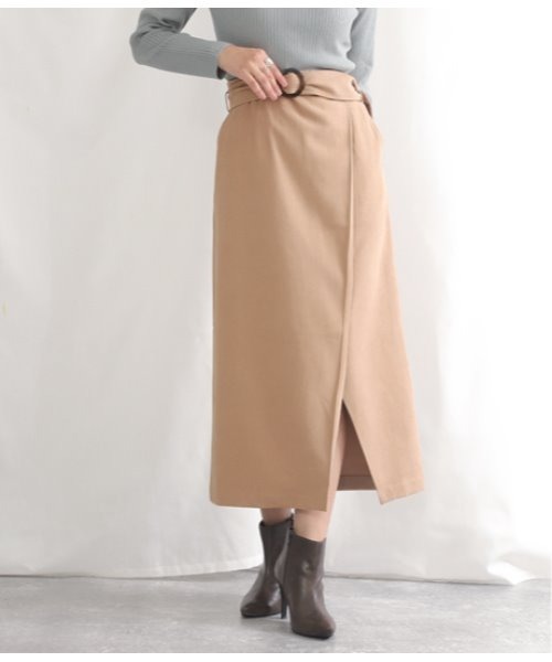フロントのラップデザインがお洒落なボトムス。 タイト過ぎないシルエットに、スリットが入ったストレスフリーな履き心地。 膝下丈なので、タイトなトップスはもちろん、 ゆるトップスやブラウスとも相性抜群なアイテムです。 ※ストレッチ少しあり ※裏地なし ※ポケットあり ※バックファスナーあり ※付属ベルト取り外し可能 ※フロントスリットあり ※ウエスト後ろゴムあり ※商品のお取扱いに関しましては、商品に付属のアテンションカード、洗濯ネームをご覧ください。