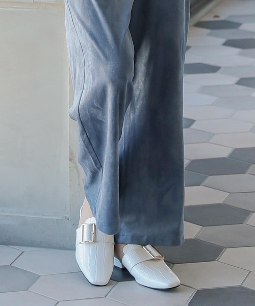 マニッシュなスクエアトゥのバブーシュローファー。甲が深めのデザインでスマートな足元に。ちょっとヒールがあることで疲れにくく歩きやすいシューズです。 【素材・サイズ感】 S~LLの4サイズ展開。高級感のあるスムース調のカラバリです。