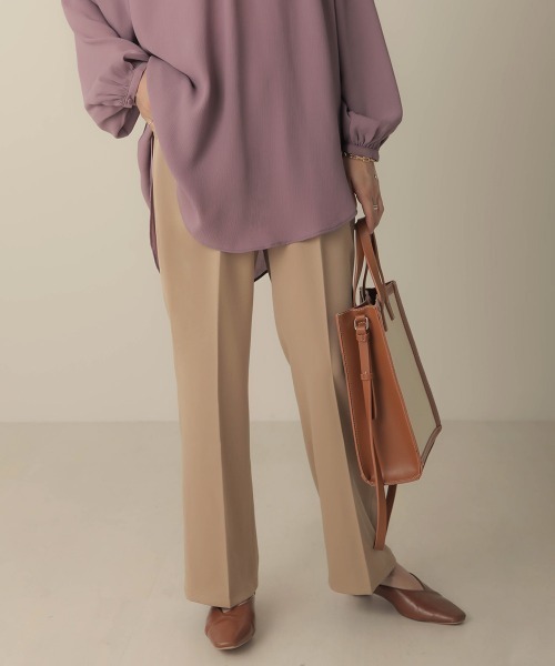 ◆Bab(バブ)◆ 脚長効果抜群の綺麗見えパンツ 程良い厚みでオールシーズン着用頂けるスラックス。センタープレスが入っているので、足を長く見せてくれます。また、ストレートタイプではなくセミフレアタイプなので、細見え効果も。ウエストはバックゴムでゆったり着れるかつ、ウエスト部分をすっきり見せてくれます。 カラーは使いやすいブラック・ベージュの他に、秋カラーのパープルをチョイス。Tシャツやゆるっとしたトップス合わせですとカジュアルな印象に、シャツやブラウス合わせですとオフィスなどお仕事服にも。ハイウエストで着用すると、更に細身見え・脚長効果抜群です! 色々なコーディネートにして頂けるので、オンオフお使い頂けるデイリーアイテムとなっております。 生地の厚さ:★★★☆☆ 透け感:★☆☆☆☆ 伸縮性:★★★★★ 裏地:なし ポケット:あり ※撮影環境により、多少実際のカラーと異なる場合がございます。 ※画像の商品はサンプルです。実際の商品と色味、仕様、加工、サイズ、素材等が若干異なる場合がございます。
