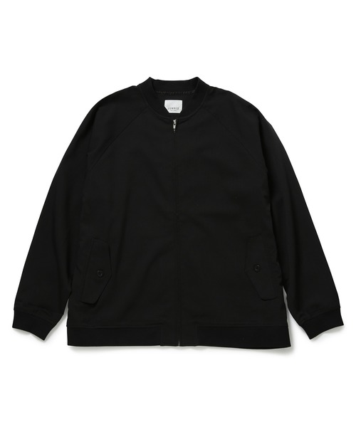 TR素材を使用した軽くしなやかなショート丈ブルゾン 衿、袖口、裾回りには伸縮性のあるリブ編地を使用 ラグランスリーブ仕様なので動きやすさがあり、フラップ付きの腰ポケットは釦留め出来る仕立てです 裏地無しでシルエットもリラックス感があり、軽く羽織れるアイテムです