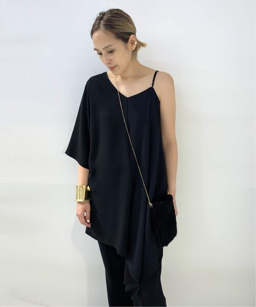 2種類の素材を使った、キャミソールとTシャツが半分になったようなデザインのブラウス。ワードローブにすっとなじむ品の良いデザインに拘りました。キャミソールの方に、薄いシフォンを重ねることで歩く度に揺れる薄いシフォンが残り香のような印象を与える一着。潔く肌を見せて、ワイドパンツでヒールを履くイメージで作っています。これからの時期にはジャケット合わせや、中にタートル着ても◎!あえてデニムで崩して着るのもおすすめ。オケージョンシーンにも着て頂けるアイテムです。*********************透け感:なし裏地:なし伸縮性:ややあり光沢感:あり生地の厚さ:普通*********************【スタッフ着用コメント】《BUYER O》30代前半/身長:162cm/体型:普通/普段サイズ:M/L /着用サイズ:フリーサイズ感: ハーフスリーブは6分袖くらいで、ヒップが隠れるくらい。キャミソールの方は膝下くらいの長さで、軽い素材で動きが出ます。素材感:さらっとした柔らかい素材。しなやかで上品な印象です。着心地:袖幅も広いので中にレイヤードもできます。一枚でももちろん、レイヤードして秋にも!デザイン性がありますが、ボトムス次第でカジュアルダウンしたスタイリングも楽しめます。*********************※店頭・外での撮影画像は、光の当たり具合で色味が違って見える場合があります。商品の色味は、スタジオ撮影の画像をご参照ください。 ※AP STUDIOでは店舗からの通販販売を行っておりません、ご了承ください。※原則ハンガーは付属いたしません。ガーメントが付属する場合い限り、ハンガーをお付け致します。