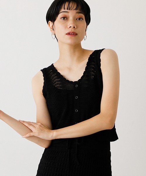 2020 Autumn&Winter item ・ドライタッチで粗野感のあるアクリルを使用することで、軽さと夏らしくさらっとした風合いを表現しています ・タンクやTシャツ、キャミソールとレイヤードするおしゃれ見えクロシェタンク ・短丈でウエスト紐がポイント、アップシルエットでスタイルアップに導きます <コーディネート> ・250DAH71-326G CROCHET LONG SKIRT とのセットアップコーディネートもおすすめです ・カジュアルにデニムと合わせてデニムライクなスタイルに ・シャイニースカートとのスタイリングもトレンドスタイルが叶う ▼商品のお気に入り登録 お気に入りアイテムの値下げ・再入荷・在庫1点などの通知を受け取ることができます。 ▼ブランドのお気に入り 登録新商品や再入荷、セール、クーポン配布などお得な情報を受け取ることができます。