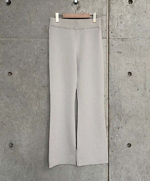 肌触りの良いウール100%の素材を使用したニットパンツ。 今季人気のフレアラインを採用。 しっかりとした編地で仕上げているので透けることの心配がなく、伸縮性があり、動きすいアイテム。 細身ながら、フレアラインがきれいでスタイルよく見えるシルエット。 同素材のA0109KSW026、A0109KA027とのセットアップがおすすめ。 きれいな表面感で、大人っぽく着られるニットパンツです。