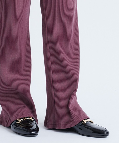 \絶対持っていたいマストアイテム/デイリーユースしやすいリブパンツ絶対に1枚は持っておきたいアイテム。伸縮性のあるリブ素材に、ウエストはゴム仕様でストレスフリーな履き心地。リブの編み地の縦ラインがすっきりとした細見えを、裾に向かって広がるフレアシルエットが脚長効果を叶えてくれます。女性らしいブラウスや、ニットなどのプルオーバーとのコーディネートはもちろん、ワンピースの裾から覗かせてレギンス感覚で合わせたレイヤードスタイルも◎ リラックス感漂うリブ素材なので、キレイめアイテムと合わせたメリハリのあるコーディネートがオススメです♪ **********************・履き心地抜群・脚をキレイに魅せてくれるシルエット・着回し力抜群**********************