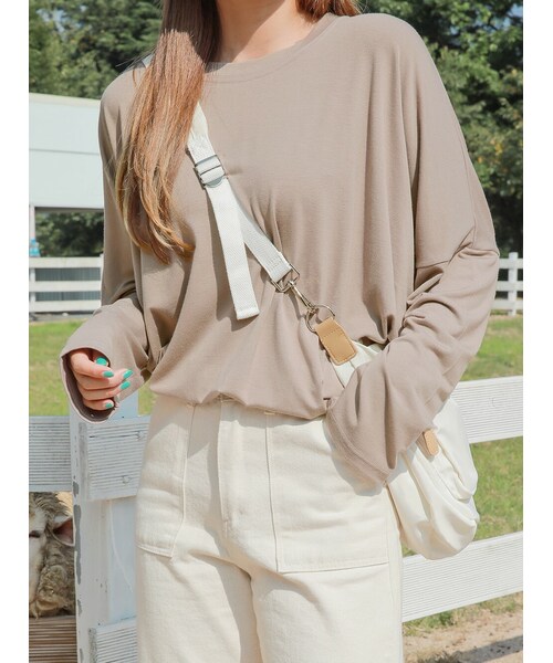どなたでも気軽に着られるシンプルなデザインでルーズなシルエットのロングTシャツです。体型をカバーするルーズなシルエット&柔らかな肌触りの素材で一日中ラクで快適な着心地を与えます。ラウンドネックラインでシンプルに着られ、手の甲を覆うロングなスリーブラインで萌え袖の完成。両サイドのスリット&バックラインの切り替えラインでポイントを与えました。ブラック、アイボリー、ブラウンの3カラー展開です。