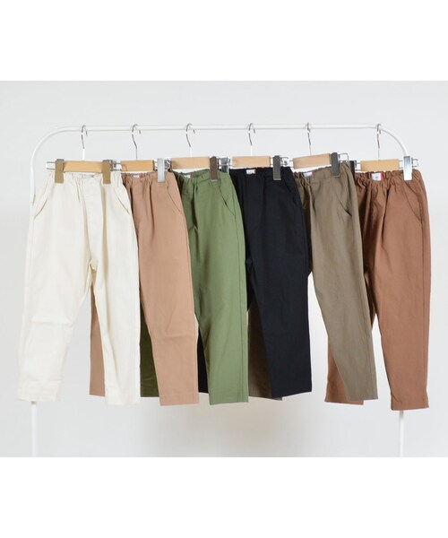 SIZE:ウエスト回り/股上/股下/裾幅 S(90~100) 43~66/20/29/21 M(110~120) 48~72/22/39/23 L(130~140) 54~78/25/48/25 XL(150~160) 60~87/28/57/27 アジャスター有 ストレッチ効いてます 左から IV/アイボリー BE/ベージュ KH/カーキ BK/ブラック AG/アッシュグレー BR/ブラウン