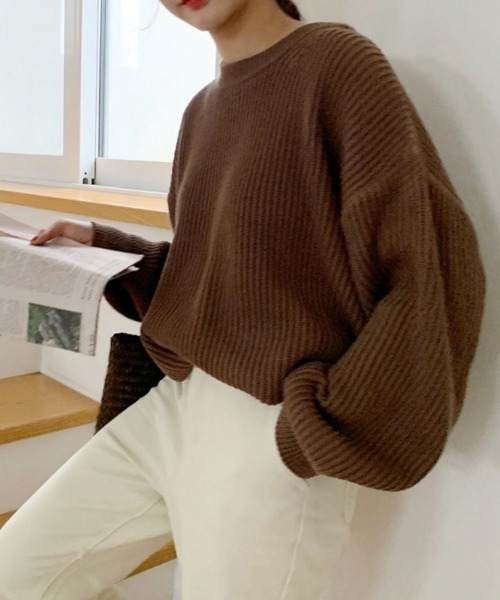 ビックシルエットで、こなれ感のあるリラックススタイルを叶えるニットプルオーバー。ミニマルな表情ながらも、スリーブをリブ編みにしたり、おさまりの良いコクーンシルエットで裾をすっきり魅せたりと大人っぽくまとめてくれる実力派です。ゆったりした身幅で女性らしい空気感、袖は長めのリブでメリハリの効いた一枚に。