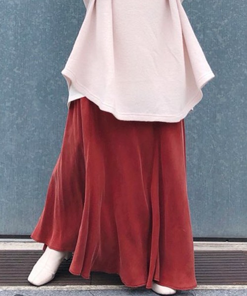 \歩く度に揺れる分量感のあるシルエット/DOUDOUで今大人気のフレアスカートが秋冬仕様のお色味で登場♪ 腰回りはすっきりと、裾は動く度に揺れるフレア感がたっぷりのスカート。大人の女性に似合う、フルレングスの丈感が魅力的。キュプラ混の素材は、高級感もあり上品に仕上げてくれます。落ち感のあるシルエットなので、トップスはビッグシルエットなものとも好バランスに◎ 綺麗に女性らしい印象を持たせつつ、ウエストはゴム仕様でストレスフリーの履き心地。 ********************** ・裾が揺れる女性らしいシルエット ・女性らしさ◎ ・高級感のあるキュプラ混素材 **********************