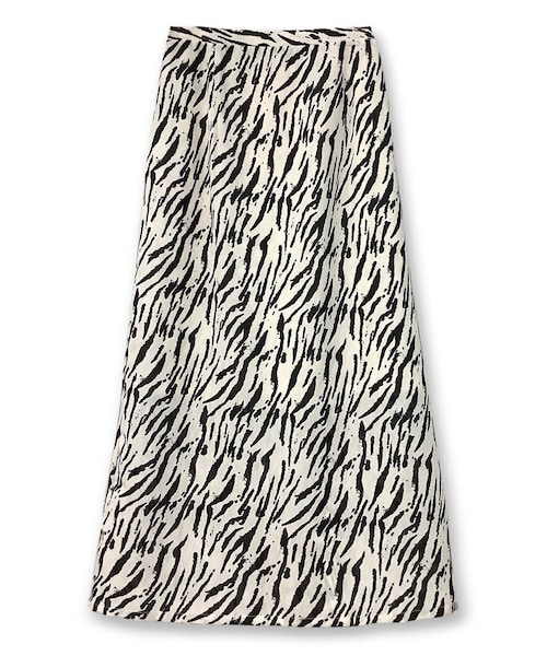 滑らかでさらっとした生地感に、モノトーンのペイント柄が目を惹くアイテム。 上品に広がるAラインにロング丈が大人ガーリーな印象に。 前ウエストはフラットなので、トップスINスタイルもすっきりきまる。 ★バックウエストゴム入りです。 ★裏地付きです。 ★裁断の関係で、柄の出方が写真と多少異なる場合があります。