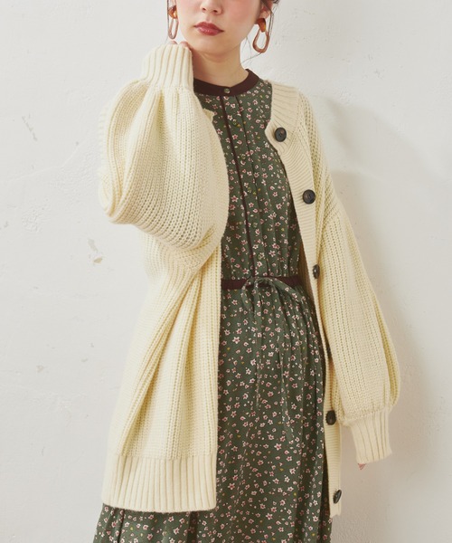 【2020AW natural couture】 オーバーサイズで抜け感を与えるニットカーディガン ぽわんとしたボリュームスリーブがポイントの便利アイテム。 少し崩して着用すると、程よいオトナの抜け感を与えてくれ、 ふっくらとした立体的なフォルムで存在感抜群! その日の気分で、プルオーバーとしても着用できる2WAY仕様です。 トレンドのパンツには勿論、ワンピと合わせても新鮮な丈感。 幅広い着こなしにマッチするシンプルさで、 カジュアルなデイリー使いにもお出かけにも活躍します。 大人の可憐さを引き出すアイボリー、やわらかな印象のライトベージュ、 こなれ感が出るブルー、レトロな雰囲気のブラウンの4色ご用意しました。 ========================= 透け感:なし 裏地:なし 伸縮性:あり 光沢感:なし 生地感 :チクチクしない中肉のニット地 =========================