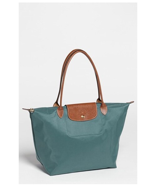 A customer-favorite, water-resistant nylon tote is offered in a range of colors, each trimmed with embossed leather for classic contrast. This version is a new, trimmed-down size with a shorter, more elegant strap drop. Top zip closure with outer snap tab. Interior wall pocket. Folds flat and snaps for storage. PVC-coated nylon/leather. By Longchamp; imported.