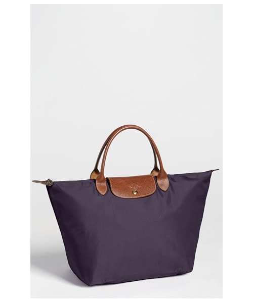 Embossed leather trims a water-resistant tote that folds into a compact shape for travel and storage. Top zip with snap-flap closure. Interior wall pocket. Folds flat for storage. Synthetic/leather. By Longchamp; imported.